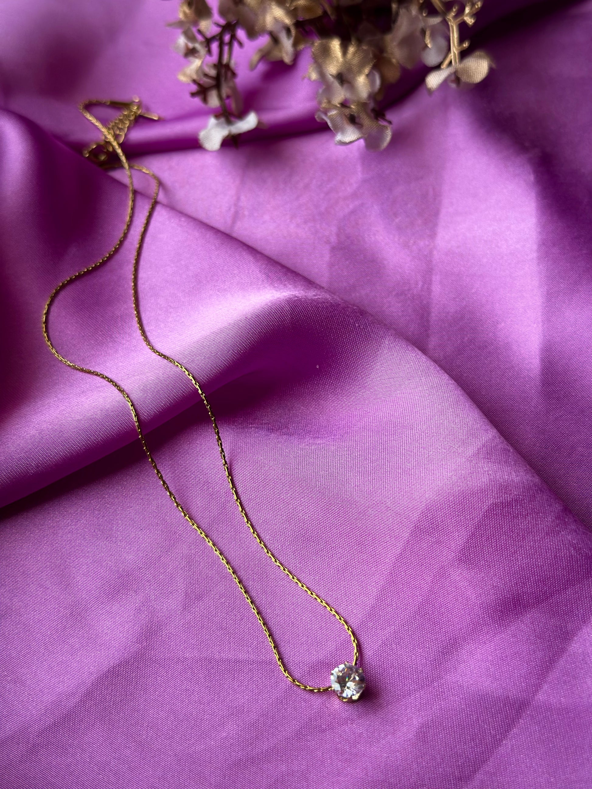 Classic beauty meets modern minimalism — this gold necklace with a single sparkling stone adds a touch of grace to any look.