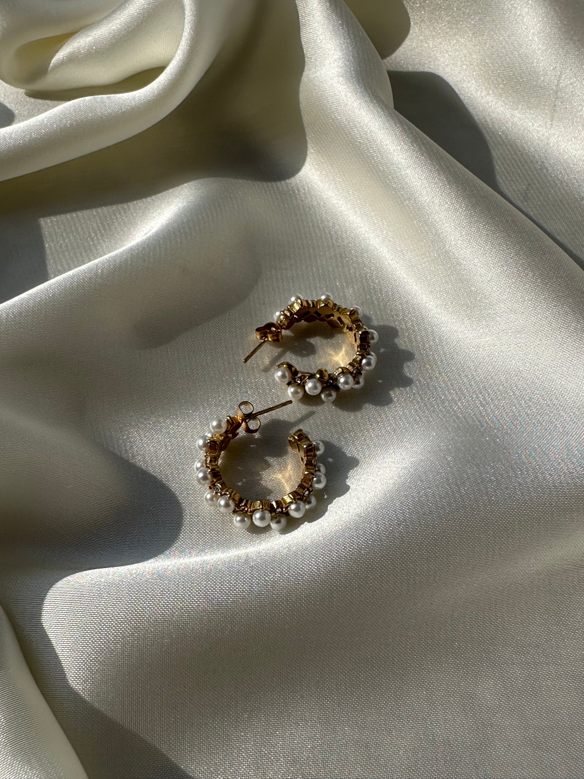Golden hoops adorned with delicate pearls — the perfect balance of elegance and everyday charm. Lightweight, stylish, and effortlessly versatile.